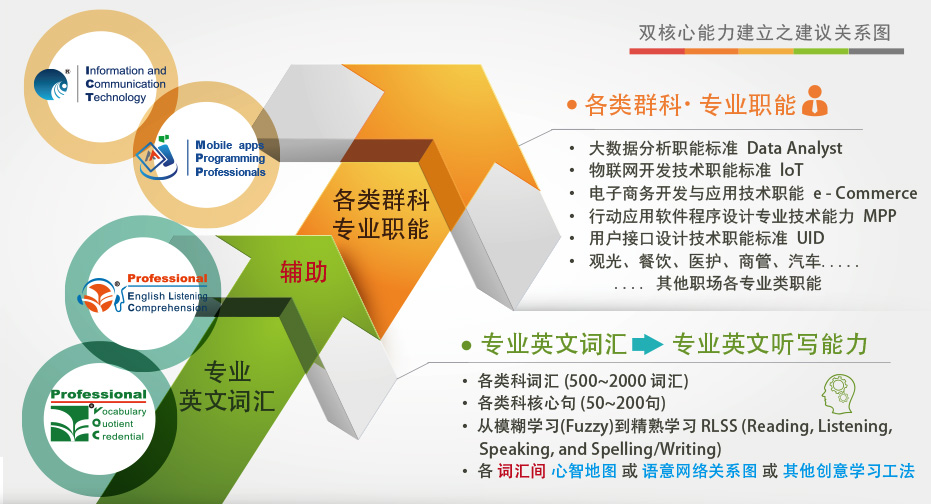 英语是国际化的语言,专业英语更是每个行业的工作人员要迈向国际化的基本专业核心能力之一。 大部分的行业各专业领域用字词,约在500-2,000 个专业字词所组成的 [关键词词集], 熟悉这些专业字词集的意义、发音、能念出来、能拼写( reading, listening, speaking and spelling, RLSS),形成一部分生活习惯式、直觉反应式的专业应用工具,轻松驾驭这些字词帮助您在专业领域学习、沟通得更容易。