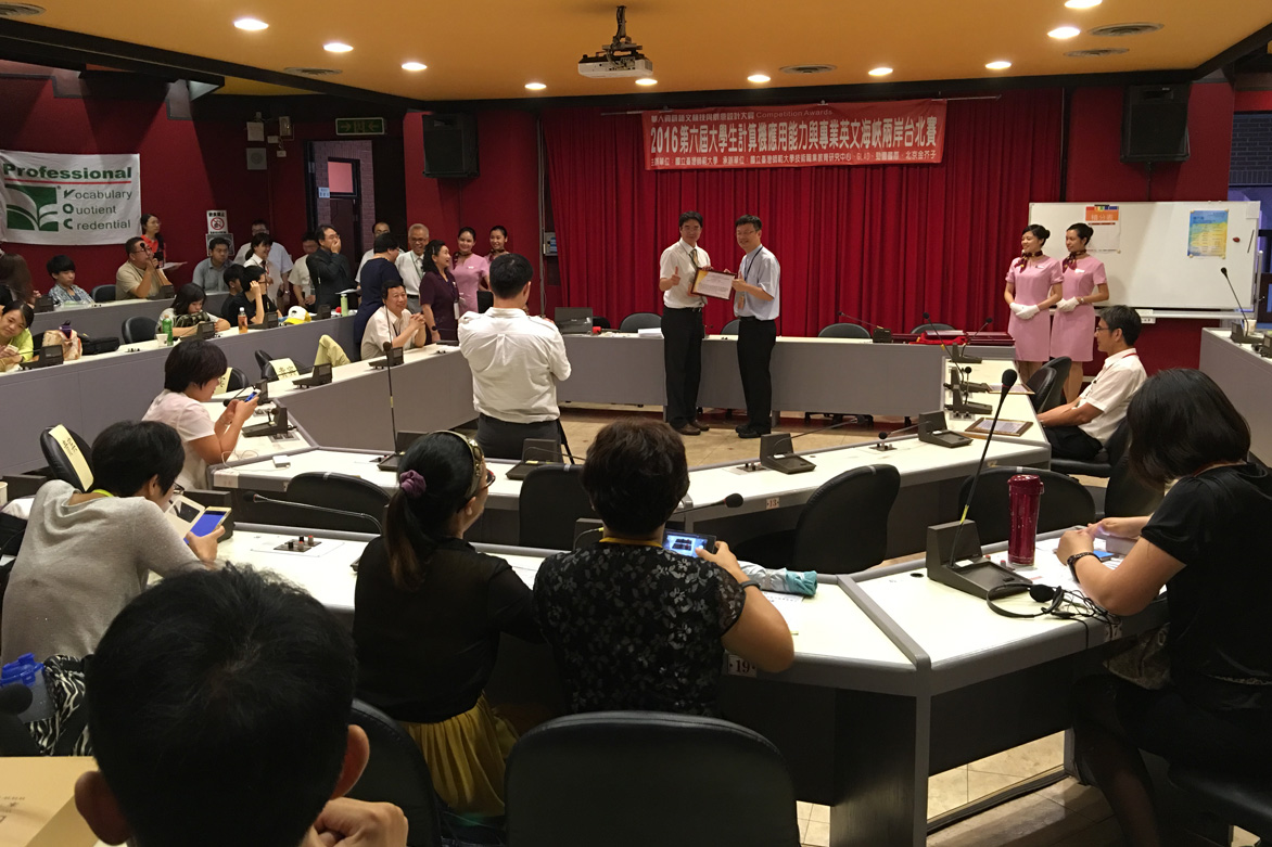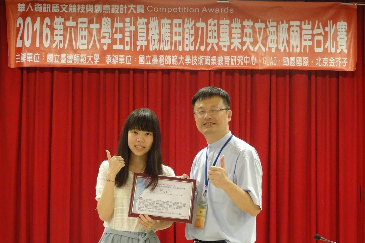 「第六届两岸大学生计算机应用能力与信息素养海峡赛暨专业英文海峡赛」是由台湾师范大学、美国Global Learning & Assessment Development (GLAD)全球学习与测评发展中心共同主办,台湾师范大学技职教育中心承办,及劲园国际与北京金芥子等单位协办,大陆方面由在2016年5月于北京中央民族大学举办的大陆赛(共约150校参加)的优胜学校,推选12所大专院校共31位选手(广东海洋大学、北京工业大学耿丹学院、电子科技大学中山学院、吉林大学、武汉警官职业学院、首都经济贸易大学、浙江育英职业技术学院、深圳信息职业技术学院、渤海船舶职业学院、湖北经济学院法商学院、黑龙江外国语学院、贵州职业技术学院) 参加,台湾方面是由台湾区域赛或全国赛(共约120校参加)的优胜学校中推选29所103位大专院校与高中职校选手参与,于2016年8月18日在台北圆满举行完成,盛况空前。