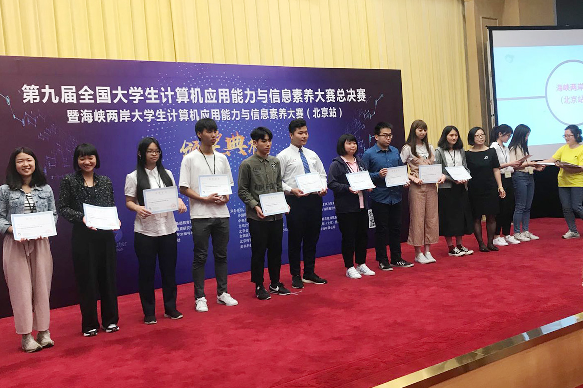 经过两天的激烈竞争,在中国北京首都经贸学院所举办的「第九届全国大学生计算机应用能力与信息素养大赛」暨「海峡两岸大学生计算机应用能力与信息素养大赛」于2019年6月2日在北京圆满结束。本届大赛最后进入总决赛的院校代表队有146个,参赛选手数为901人,指导教师256人。此次竞赛中的海峡两岸赛部分,由台湾代表队派出了来自12个学校的近41名选手参赛,增进了两岸学子在计算机应用与开发能力(商务应用软件BAP/机算机基础ICT/小程序MDA/大数据分析BAA)及专业英语文(词汇与听写)能力等产业核心技能素养方面的交流,加深了两岸教师与青年学子之间的相互了解和友谊。