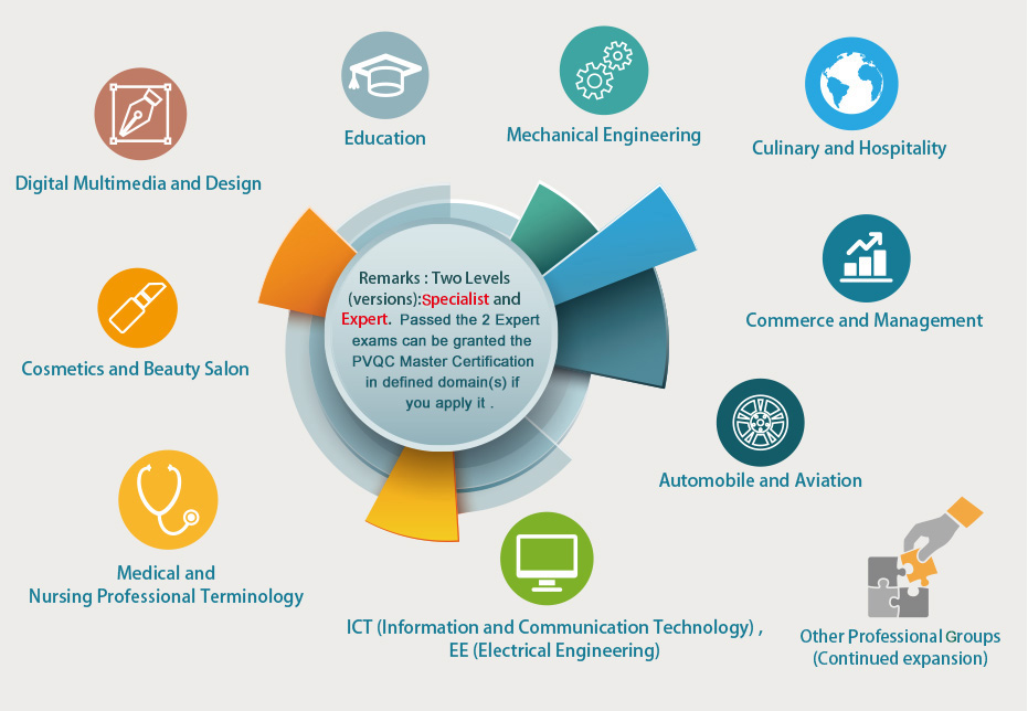 PVQC provides multiple patterns in learning and assessment modes to meet the requirements for effective and efficient learning of key words and terminologies in the domain between in both English and your native language. PVQC certification program provides two levels: specialist and expert.